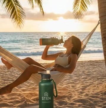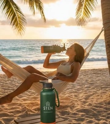 Uso minha garrafa Sten Adventure todos os dias; mantém a bebida fria, mesmo sob sol intenso.